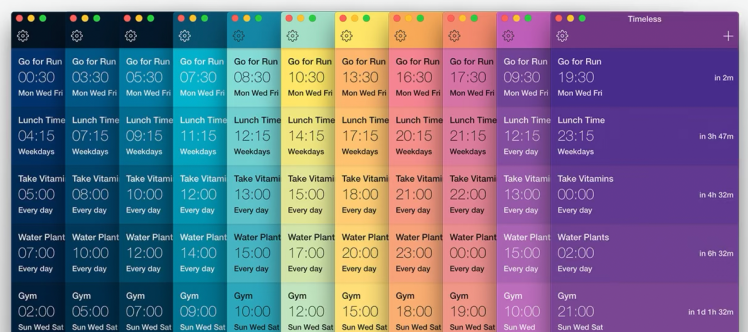 This multi-alarm app is also extremely simple, and there are plenty of similar products that do the same job, even built-in alarms can be set up to do this. But incorporating daily routines onto my desktop via this particular one has been extremely helpful for two reasons: 1. using a desktop app means I don’t have to have my phone anywhere near my desk unless I’m expecting calls, and 2. it’s nice to look at and the colours change to suit the time of day.